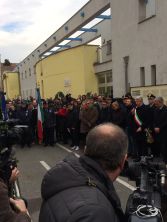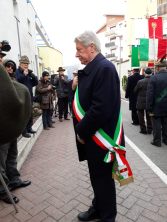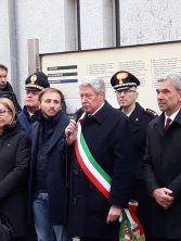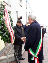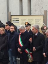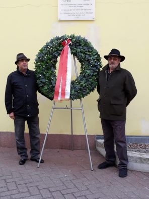 Deposizione della corona alla targa commemorativa in memoria dei sinti, al muro ex lager di Bolzano, con un breve intervento sui deportati sinti.